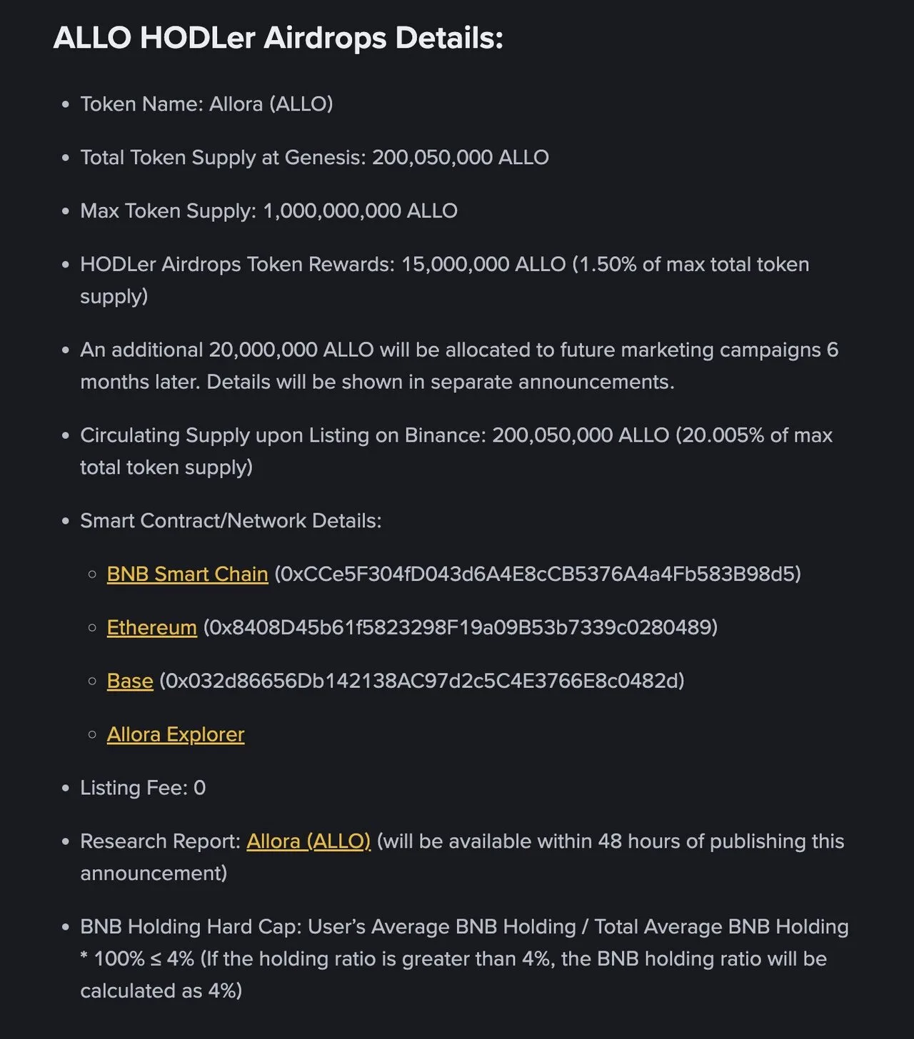 Binance thông báo dự án thứ 58 trên HODLer Airdrop – Allora (ALLO)