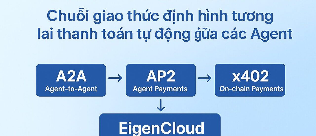 Chuỗi giao thức A2A → AP2 → x402 cùng lớp hạ tầng xác thực EigenCloud đang mở ra kỷ nguyên mới cho thanh toán tự động giữa các tác nhân thông minh (AI agents).